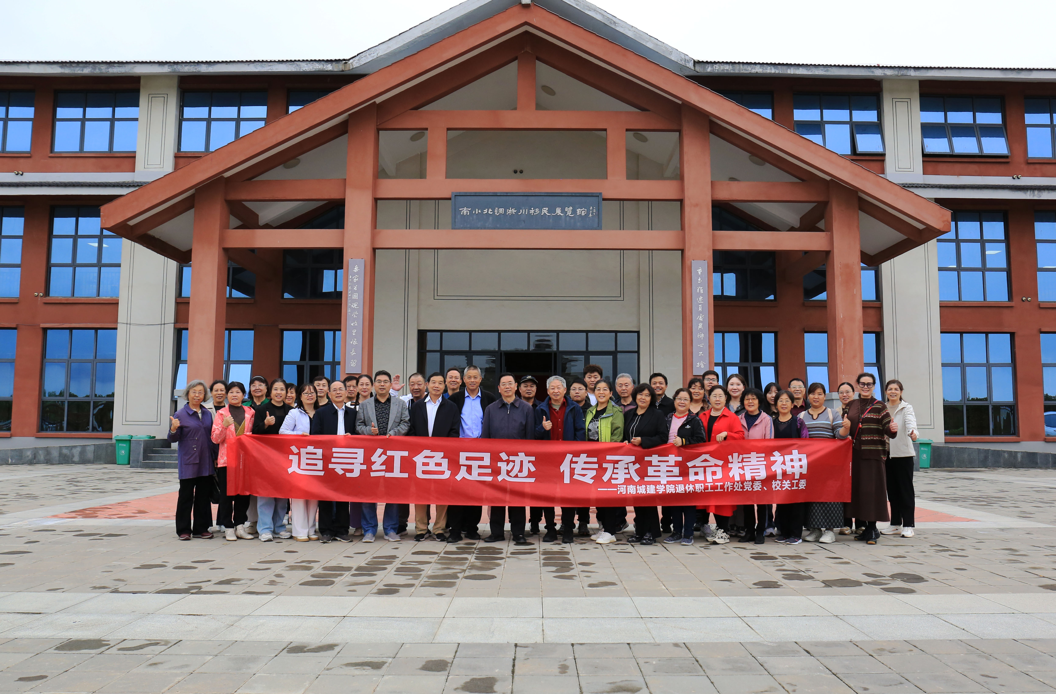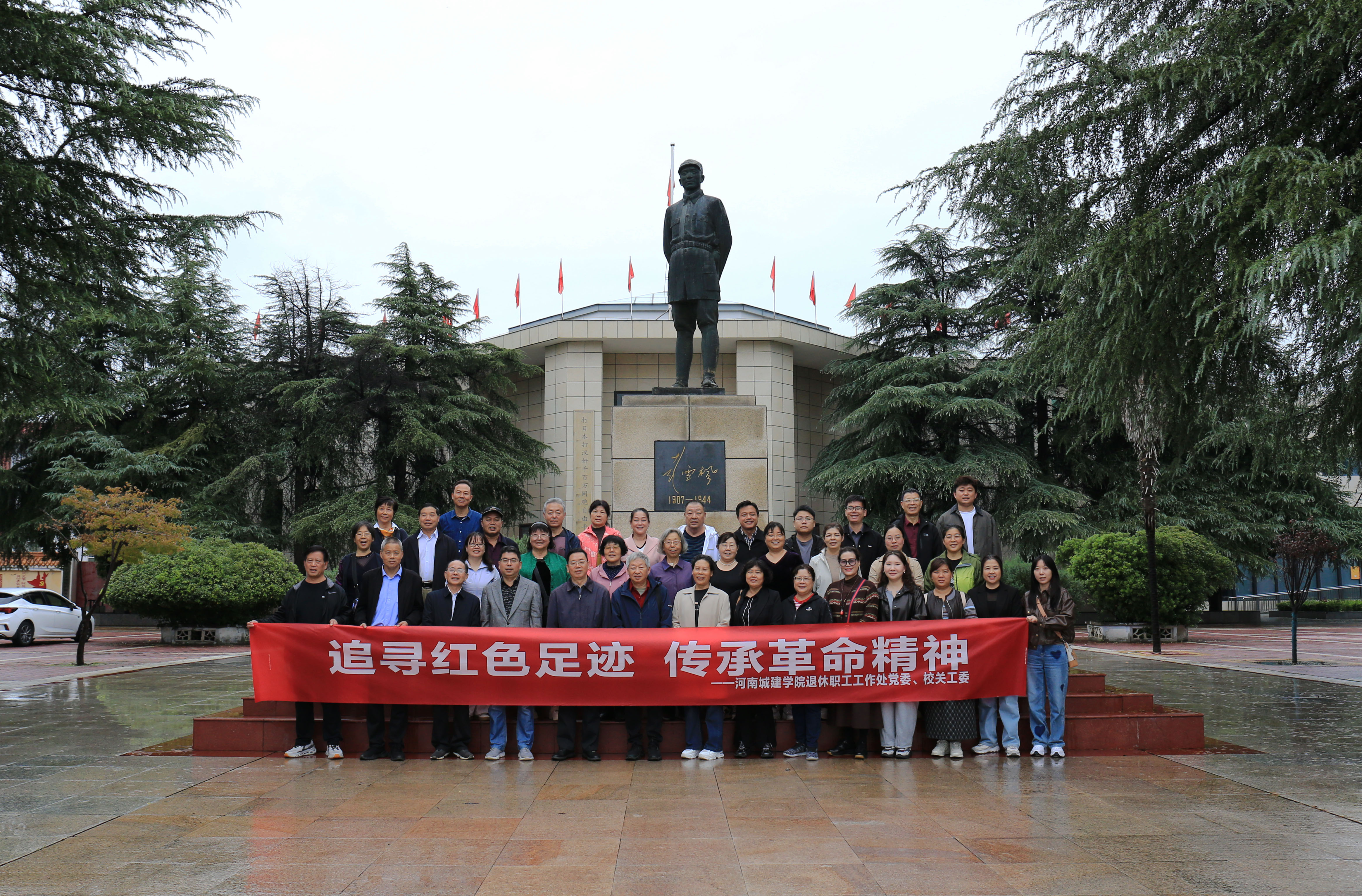 在纪念中国人民抗日战争暨世界反法西斯战争胜利80周年的重要历史时刻,为深切缅怀革命先烈、传承伟大抗战精神,9月27日至28日,2138cn太阳集团党委、校关工委组织退休党员代表及校院两级关工委代表近40人赴南阳开展“追寻红色足迹,传承革命精神”主题党日活动,先后参观了彭雪枫将军纪念馆和南水北调淅川移民展览馆。